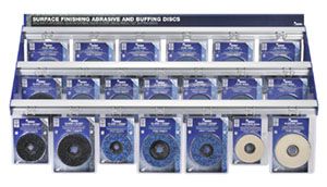 Bordo Flap, Clean & Strip and Wool Felt Buffing Disc - 3 Tier Merchandiser