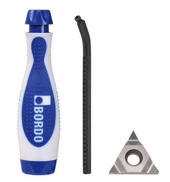 - Each solid tungsten carbide blade has 3 deburring corners.