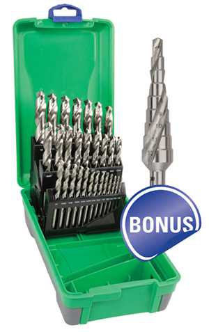 1/16-1/2" 29 Piece Bright HSS Jobber Drill Set in ABS Plastic Case with BONUS Step Drill | ||