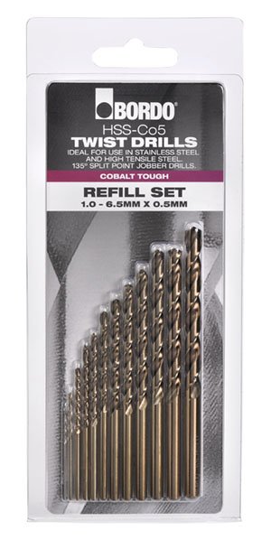 - Bordo Metric Cobalt Tough HSS-Co5 Twist Drills.