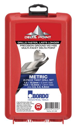 25 Piece - 1-13mm Delta Point Bright Finish M2-HSS Twist Drill Set