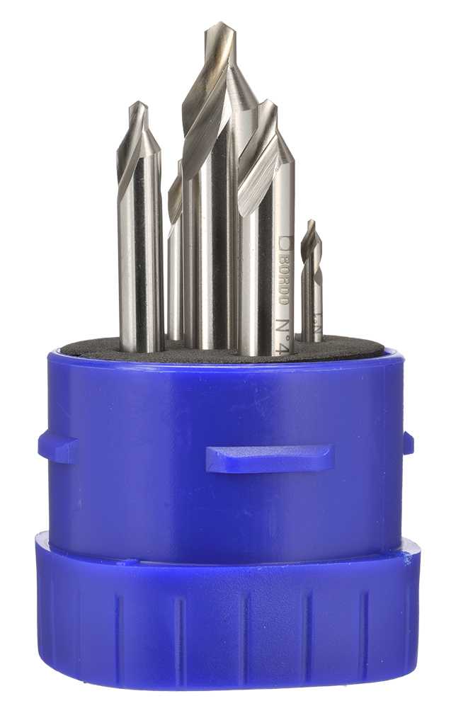 The large diameter shank on the centre drill holds the drill point right on centre.