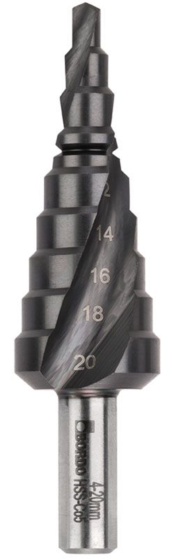 4-20 x 2mm Spiral Flute HSS Cobalt TiAlN Coated Step Drill