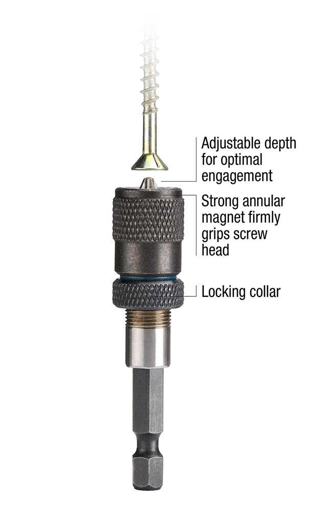 - The MAG+ screw grip magnetic bit holder features a strong annular magnet which firmly grips the screw head and ensures a positive engagement with the insert bit.