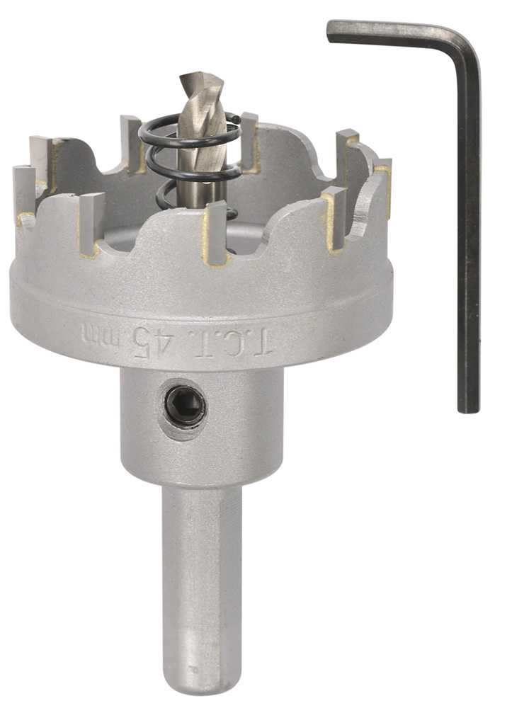 - TCT hole saws are ideal for repetition cutting in steel plate and synthetic resin plates up to 5mm thick.