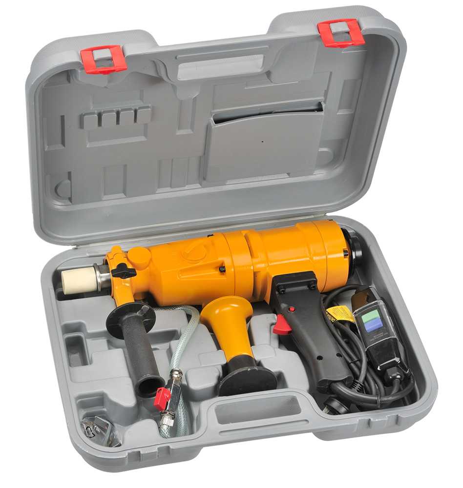 - Low 950 RPM speed for large diameter hand held coring in materials such as brick and limestone.