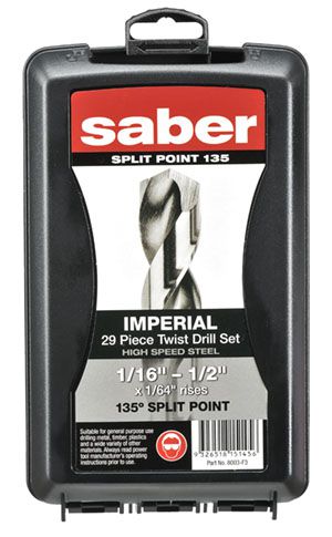 - Saber 29 Piece HSS Bright Finish Twist Drill Set 1/16" - 1/2" x 1/64" rises
