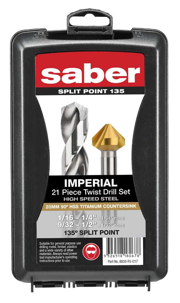 - Saber Fractional 21 Piece Bright Finish HSS Twist Drill Set - Bonus Stubbie Folding Knife