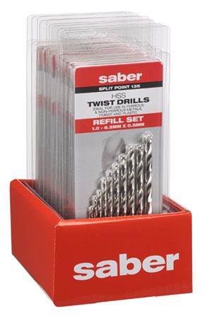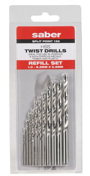 - Saber HSS Bright Finish Drill Refill Set 1.0-6.5mm x 0.5mm increments.