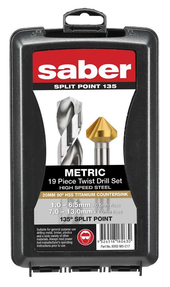 - Saber Metric 19 Piece Bright Finish HSS Twist Drill Set - Bonus 20mm Countersink