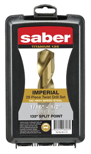 - Saber Fractional 29 Piece TiN Coated M2-HSS Twist Set 1/16 - 1/2" x 1/64" rises