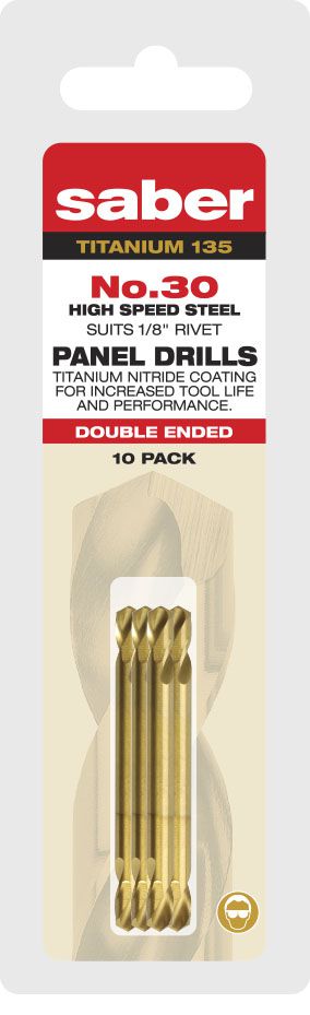 - Saber 30 Gauge Hang Sell TiN Coated HSS Double Ended Panel Drill 10 Pack