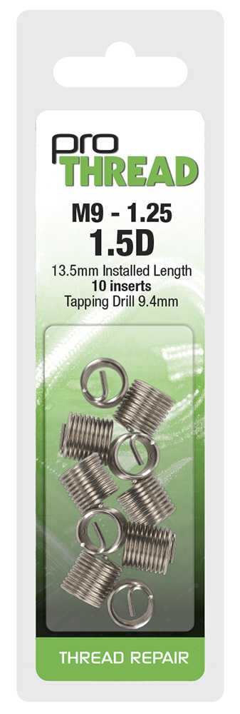- 9 x 1.25mm Stainless Steel Metric Inserts